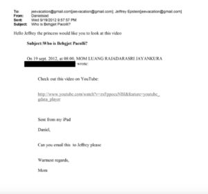 Emaili i 19 shtatorit të vitit 2012, e dërguar nga Konsulli i Republikës së Kosovës në Tajlandë, kërkohet që Jeffrey të shoh një video.