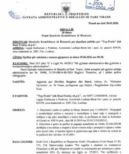 Kapitali publikon dokumentin e padisë, ku AZHBR i kërkon kompanisë më të mandhe të grumbullimit të fruta perimeve në vend të kthejë shumën e grantit të përfituar në vitin 2019, së bashku me penalitetet përkatëse.